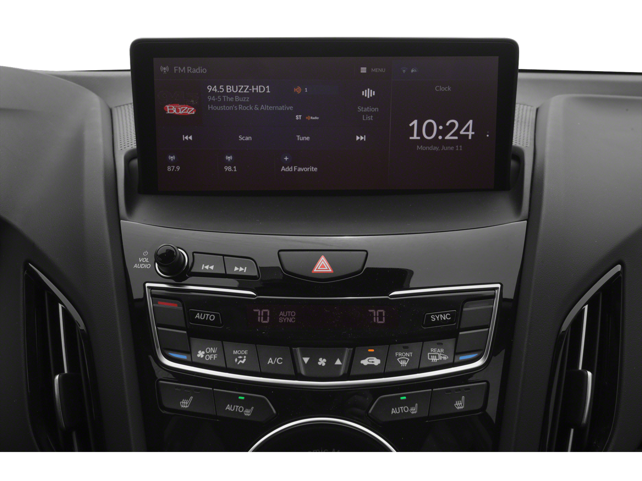 - Radio: Sistema de audio Acura Premium, que incluye: 9 altavoces, interfaz táctil, pantalla central HD de 10,2" con doble contenido, función de punto de acceso móvil, reconocimiento de voz en lenguaje natural, Apple CarPlay, Siri Eyes Free, capacidad para enviar mensajes SMS, MMS y correos electrónicos, interfaz telefónica inalámbrica Bluetooth® HandsFreeLink, radio por satélite SiriusXM, interfaz de audio USB, transmisión de audio por Bluetooth®, toma de entrada auxiliar/MP3, compensación de volumen sensible a la velocidad (SVC), 2 puertos de carga USB (carga de 2,5 A en el asiento delantero) y sistema Maintenance Minder