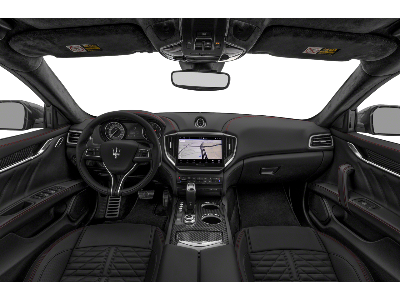 , asientos deportivos delanteros calefactables con 12 posiciones de ajuste eléctrico, frenos de disco en las 4 ruedas, frenos ABS, suspensión adaptativa, aire acondicionado, llantas de aleación, levas de cambio de aluminio en la columna de dirección, radio AM/FM: SiriusXM, reposacabezas delanteros antilátigo, Apple CarPlay/Android Auto, luces largas automáticas, retrovisores exteriores con atenuación automática, retrovisor interior con atenuación automática, climatizador automático, asistencia a la frenada, parachoques del color de la carrocería, brújula, luces delanteras con apagado retardado, cierre automático de puertas, compartimento en la puerta del conductor, espejo de cortesía para el conductor, airbags frontales dobles, airbags laterales delanteros dobles, Control electrónico de estabilidad, sistema de comunicación de emergencia: Maserati Connect, sistema de sonido premium mejorado, cámara de aparcamiento trasera, suspensión independiente en las cuatro ruedas, barra estabilizadora delantera, asientos delanteros tipo baquet, reposabrazos central delantero con compartimento, aire acondicionado delantero de doble zona, luces de lectura delanteras, mando para puerta de garaje: HomeLink, altavoces harman/kardon®, sistema de audio premium harman/kardon de 900 vatios, retrovisores exteriores calefactables, asientos delanteros calefactables, volante calefactable, iluminación de entrada, airbag para las rodillas, pomo de la palanca de cambios de cuero, volante de cuero, Aviso de presión baja en los neumáticos, Asiento con memoria, Sistema de navegación, Airbag con sensor de ocupante, Indicador de temperatura exterior, Airbag de techo, Consola de techo, Alarma de pánico, Compartimento en la puerta del acompañante, Espejo de cortesía para el acompañante, Tapicería de cuero natural Pieno Fiore, Retrovisores exteriores eléctricos, Asiento del conductor eléctrico, Techo corredizo eléctrico, Asiento del acompañante eléctrico, Dirección asistida, Elevalunas eléctricos, Sistema de datos de radio, Radio: AM/FM con Maserati Intelligent Assistant, limpiaparabrisas con sensor de lluvia, barra estabilizadora trasera, luces antiniebla traseras, luces de lectura traseras, reposabrazos central en los asientos traseros, desempañador de la luneta trasera, acceso sin llave a distancia, sistema de seguridad, control de velocidad, dirección sensible a la velocidad, limpiaparabrisas sensibles a la velocidad, asiento trasero abatible por partes, volante deportivo, memoria del volante, controles de audio en el volante, tacómetro, Volante telescópico, volante inclinable, control de tracción, ordenador de a bordo, logotipo Trofeo bordado en los reposacabezas delanteros y traseros, retrovisores con intermitentes, limpiaparabrisas de intermitencia variable, asientos delanteros ventilados, voltímetro y llantas: 21 Orione forjadas en negro pulido.