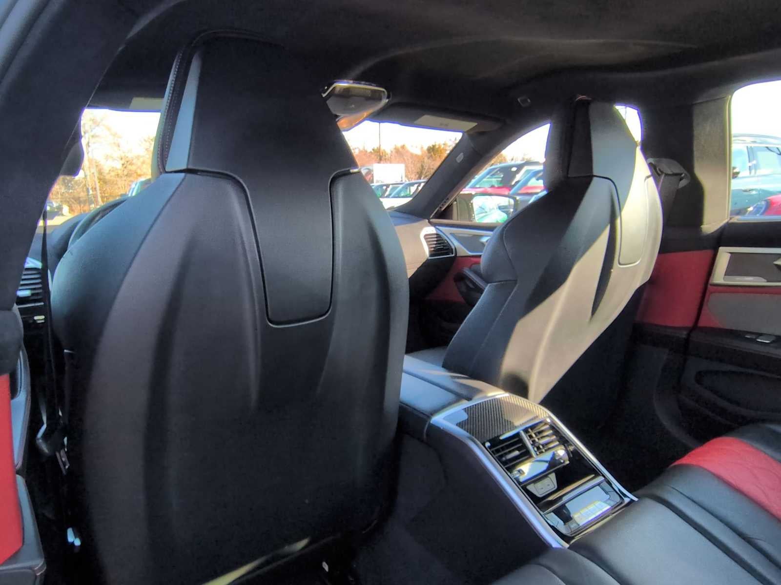 , paquete de asistencia a la conducción (detección activa de ángulo muerto, asistente activo a la conducción, control activo de distancia de aparcamiento, sistema de aviso de salida de carril, asistente de aparcamiento Plus, cámara de visión trasera y visión envolvente con vista 3D), paquete profesional de asistencia a la conducción (asistente activo a la conducción Pro y asistente ampliado para atascos), Paquete exterior M Carbon, paquete M Drivers, techo interior Alcantara en color tapicería, compatibilidad con Apple CarPlay y Android Auto, cuero Merino completo, tapicería de cuero Merino completo, faros totalmente automáticos, sistema de sonido envolvente harman/kardon, altavoces harman/kardon®, pantalla de visualización frontal, asientos delanteros calefactables con reposabrazos y volante, volante calefactable, Volante de cuero, Live Cockpit Pro con navegador, soporte lumbar, frenos M Carbon Ceramic, asiento con memoria, sistema de navegación, asiento del conductor eléctrico, asiento del acompañante eléctrico, radio por satélite SiriusXM con 1 año de suscripción, memoria del volante, controles de audio en el volante, asientos delanteros ventilados, llantas: 20 x 9,5 delante y 20 x 10,5 detrás M de radios dobles, carga inalámbrica, 16 altavoces, frenos de disco en las 4 ruedas, frenos ABS, suspensión adaptativa, aire acondicionado, llantas de aleación, radio AM/FM: SiriusXM con 360L, faros automáticos de luz larga, volante con inclinación automática, retrovisores exteriores con atenuación automática, retrovisor interior con atenuación automática, control automático de temperatura, BMW Assist eCall, BMW TeleServices, asistencia de frenado, parachoques: del color de la carrocería, servicios ConnectedDrive, faros con apagado retardado, cierre automático de puertas, compartimento en la puerta del conductor, espejo de cortesía para el conductor, airbags frontales duales, Airbags laterales delanteros dobles, control electrónico de estabilidad, sistema de comunicación de emergencia: BMW Assist eCall, cámara de aparcamiento trasera exterior, suspensión independiente en las cuatro ruedas, barra estabilizadora delantera, asientos delanteros individuales, reposabrazos delantero central, aire acondicionado delantero de doble zona, luces de lectura delanteras, asientos delanteros ventilados, transmisor de puerta de garaje, retrovisores exteriores calefactados, asientos delanteros calefactados, entrada iluminada, pomo de cambio de marchas de cuero, Aviso de presión baja en los neumáticos, Airbag con sensor de ocupantes, Indicador de temperatura exterior, Airbag de techo, Alarma de pánico, Compartimento en la puerta del acompañante, Espejo de cortesía para el acompañante, Retrovisores eléctricos, Dirección asistida, Elevalunas eléctricos, Radio controlada por satélite, Sistema de datos de radio, Radio: Sistema de audio AM/FM, Limpiaparabrisas con sensor de lluvia, Aire acondicionado trasero, Barra estabilizadora trasera, Aire acondicionado trasero de doble zona, Cortina trasera, Desempañador de la luneta trasera, Entrada sin llave a distancia, Sistema de seguridad, Control de velocidad, Dirección sensible a la velocidad, Limpiaparabrisas sensibles a la velocidad, Asiento trasero abatible por partes, Spoiler, Volante deportivo, Tacómetro, Volante telescópico, Volante inclinable, Control de tracción, Ordenador de a bordo, Retrovisores con intermitentes, Limpiaparabrisas intermitentes variables, Llantas: 20 x 9,5 delante y 20 x 10,5 detrás M Star-Spoke, y punto de acceso WiFi.