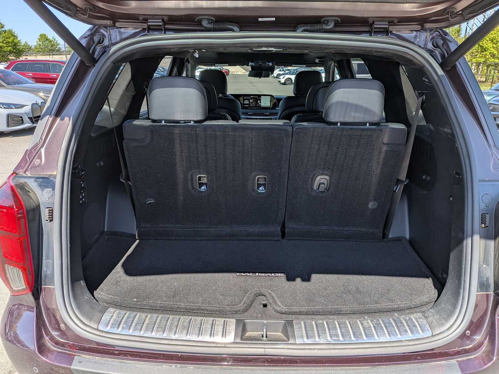 CARFAX: un solo propietario. Hyundai Palisade Calligraphy 2023 con tracción total, cambio automático de 8 velocidades con SHIFTRONIC, color Sierra Burgundy, motor V6, tercera fila de asientos: banqueta dividida, Apple CarPlay y Android Auto, separadores de carga, red para el maletero, paquete de maletero, bandeja para el maletero, cámara de aparcamiento trasera, faros totalmente automáticos, altavoces harman/kardon®, pantalla de visualización frontal, asientos delanteros de tipo butaca con calefacción y ventilación, memoria de asientos, sistema de navegación, grupo de opciones 01, asiento del conductor eléctrico, portón trasero eléctrico, techo corredizo eléctrico, tapicería de cuero Nappa premium, radio: sistema de audio premium AM/FM/MP3, controles de audio traseros, asiento reclinable en la tercera fila, acceso sin llave a distancia, asiento trasero abatible por partes, controles de audio en el volante, asientos delanteros ventilados, asientos traseros ventilados, llantas: aleación exclusiva Calligraphy de 20 x 7,5J.