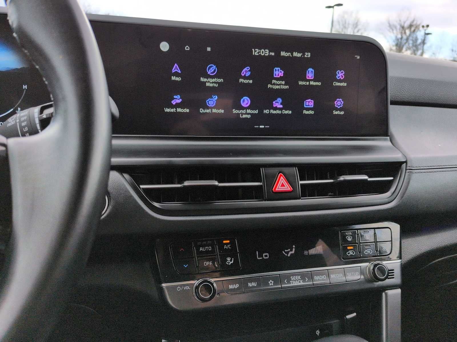- Radio: AM/FM/HD/Satélite Sistema de visualización: pantalla táctil de 10,25 pulgadas, telemática UVO, Android Auto, Apple CarPlay, 6 altavoces, navegación, conectividad USB, Bluetooth® y reconocimiento de voz.