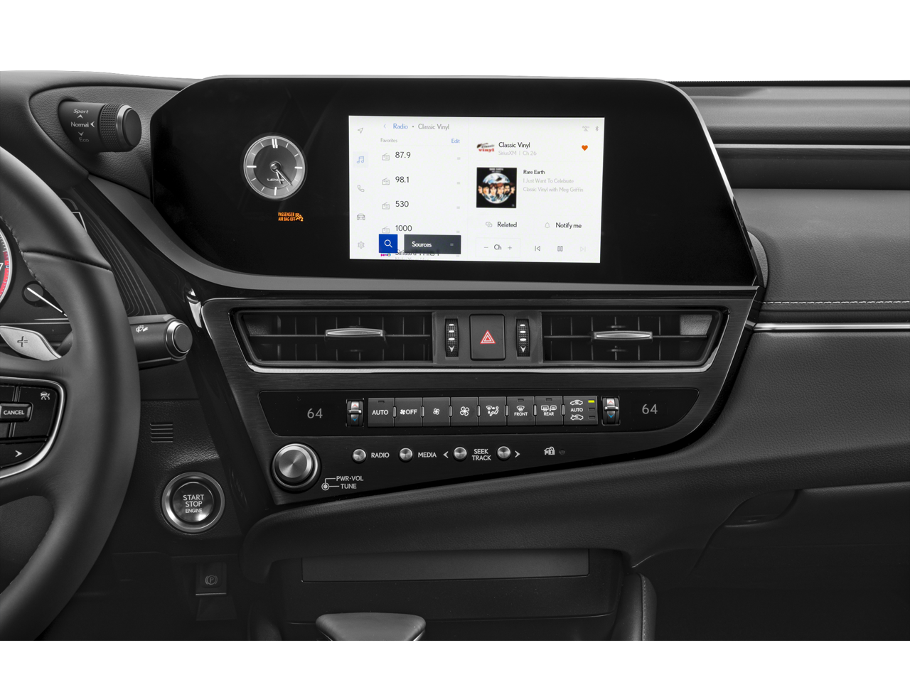- Radio: Interfaz Lexus con pantalla táctil multimedia de 8 pulgadas, que incluye: sistema de sonido premium Lexus de 10 altavoces, integración inalámbrica con Apple CarPlay, compatibilidad inalámbrica con Android Auto, suscripción de prueba de 3 meses al plan platino de SiriusXM, conectividad Bluetooth® y USB para teléfonos inteligentes, actualizaciones de tráfico y meteorología sin suscripción a través de HD Radio, Safety Connect, Service Connect, Remote Connect, Wi-Fi Connect con pruebas de punto de acceso Wi-Fi de AT&T y compatibilidad con streaming integrado (Apple Music y Amazon Music), se requiere suscripción de pago después de la prueba, depende de la red 4G, consulte lexus.com/interface para obtener más detalles, función Drive Connect con Cloud Navigation, Intelligent Assistant (Hey Lexus) y Destination Assist disponibles mediante suscripción, depende de la red 4G, consulte lexus.com/interface para obtener más detalles.