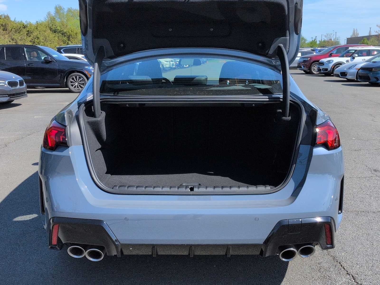 Frenos ABS, llantas de aleación, brújula, control electrónico de estabilidad, aire acondicionado delantero de doble zona, retrovisores exteriores calefactables, asientos delanteros calefactables, entrada iluminada, aviso de presión baja en los neumáticos, navegación, sistema de navegación, acceso sin llave a distancia, control de tracción, 12 altavoces, frenos de disco en las 4 ruedas, suspensión adaptativa, aire acondicionado, radio AM/FM: SiriusXM, Compatibilidad con Apple CarPlay y Android Auto, Compatibilidad con Apple CarPlay, Faros de carretera automáticos, Retrovisores exteriores con atenuación automática, Retrovisor interior con atenuación automática, Control automático de temperatura, BMW Assist eCall, BMW TeleServices, Asistencia a la frenada, Parachoques: del color de la carrocería, Faros con apagado retardado, Vahía en la puerta del conductor, Espejo de cortesía para el conductor, Airbags frontales de doble impacto, airbags laterales delanteros dobles, sistema de comunicación de emergencia: BMW Assist eCall, cámara de aparcamiento trasera, suspensión independiente en las cuatro ruedas, barra estabilizadora delantera, asientos delanteros tipo baquet, reposabrazos central delantero, luces de lectura delanteras, faros totalmente automáticos, sistema de sonido envolvente digital harman/kardon® Logic 7®, altavoces harman/kardon®, volante de cuero, Tapicería M Alcantara/Veganza, Asiento con memoria, Airbag con sensor de ocupante, Indicador de temperatura exterior, Airbag de techo, Alarma de pánico, Compartimento en la puerta del acompañante, Espejo de cortesía del acompañante, eSIM 5G personal, Retrovisores eléctricos, Asiento del conductor eléctrico, Asientos delanteros eléctricos, Asiento del acompañante eléctrico, Dirección asistida, Elevalunas eléctricos, Sistema de datos de radio, Radio: sistema de audio AM/FM, limpiaparabrisas con sensor de lluvia, barra estabilizadora trasera, luces de lectura traseras, reposabrazos central en los asientos traseros, desempañador de la luneta trasera, sistema de seguridad, radio por satélite SiriusXM con 1 año de suscripción, control de velocidad, Dirección sensible a la velocidad, Limpiaparabrisas sensibles a la velocidad, Asiento trasero abatible por partes, Alerón, Asientos deportivos, Volante deportivo, Mandos de audio en el volante, Tacómetro, Volante telescópico, Volante inclinable, Ordenador de a bordo, Espejos con intermitentes, Limpiaparabrisas de intermitencia variable, Llantas: 18 x 8,0 M con radios en Y bicolor, Pantalla panorámica y Carga inalámbrica de dispositivos.